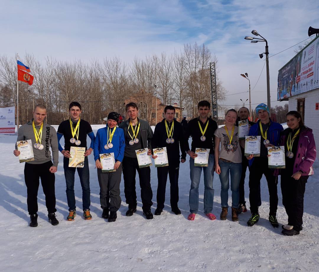 Мы взяли последним 31 пункт на лэп. Здесь мы сняли снегоступы и наконец без них пошли ногами на финиш. По времени мы бы успели взять еще хотя бы 1 кп на 25 баллов, но почему-то мы так расслабились, что забили. Когда уже вышли на стадион в Ветлужанке — встретили наших лыжников и финишировали с ними вместе! Остальные команды уже давно ждали на финише.