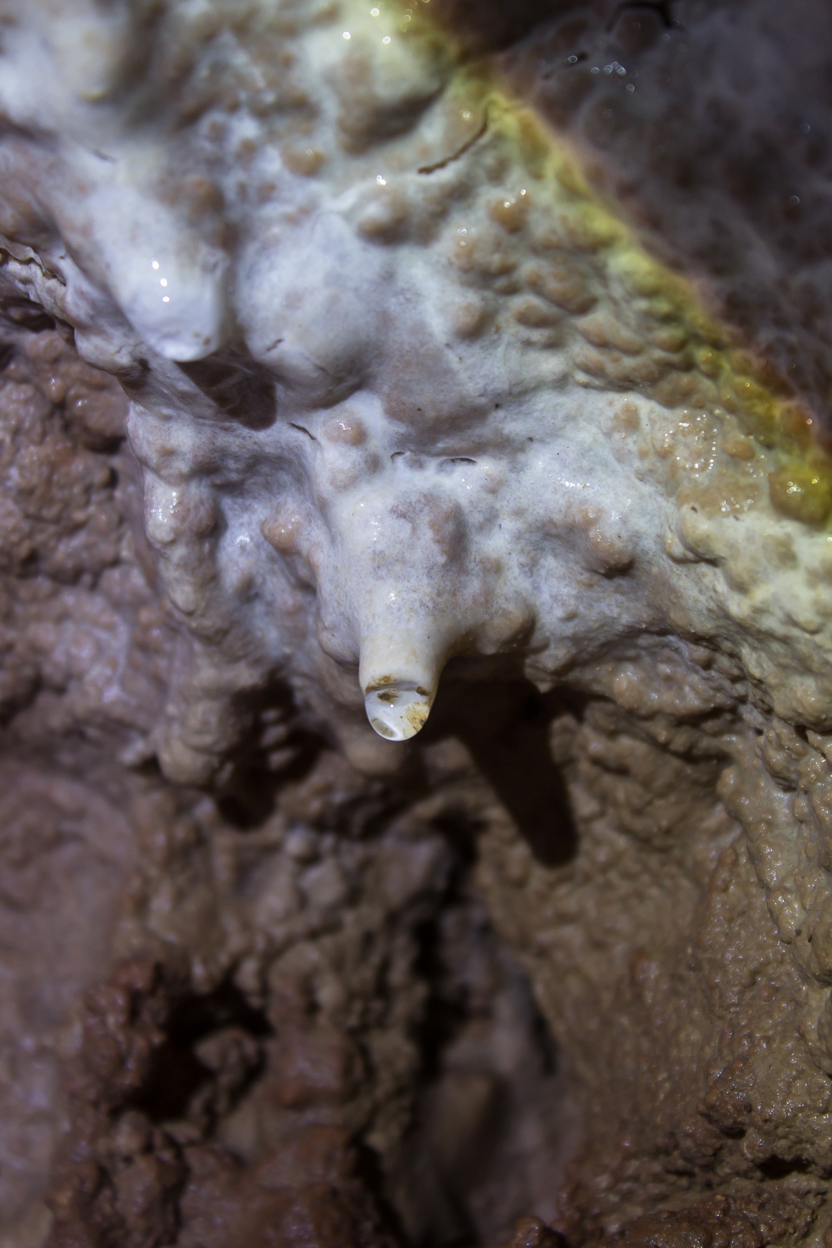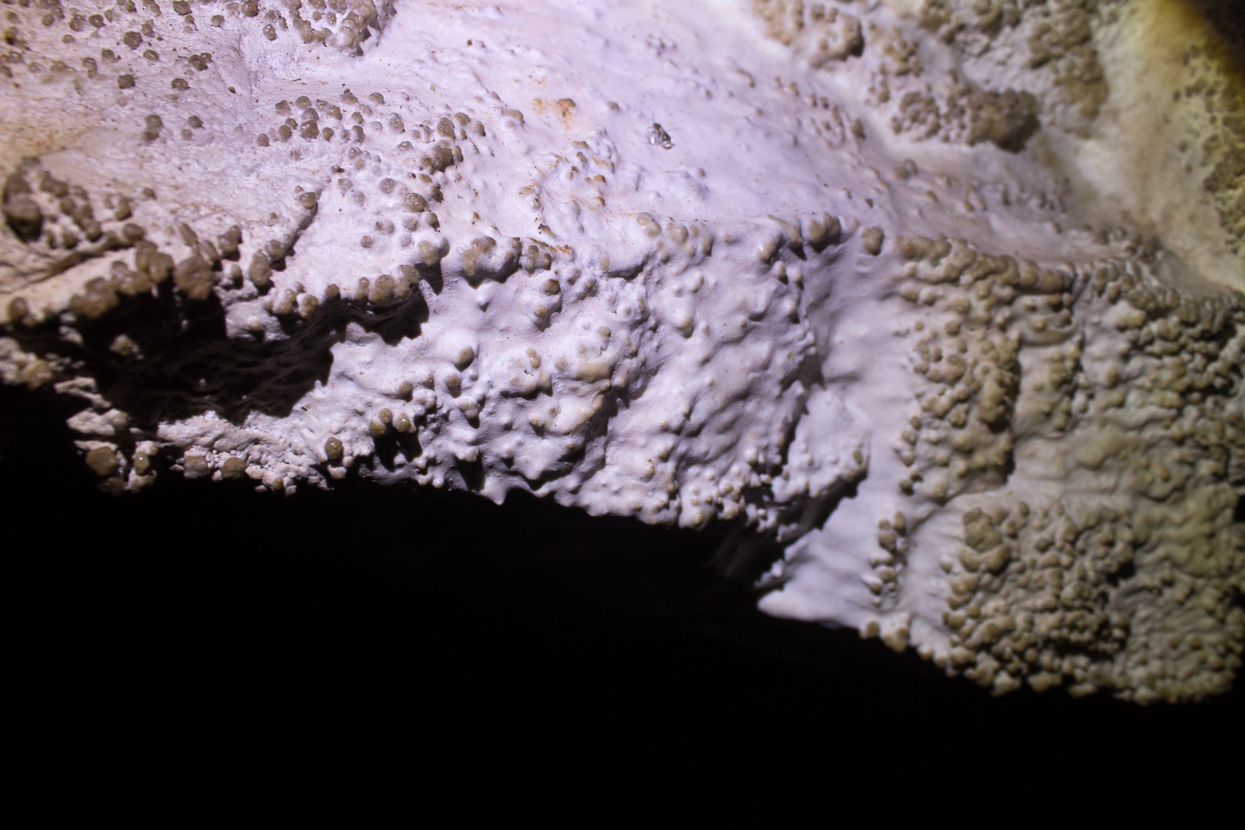 Спуск в пещеру начинается с высокого камина, по которому нужно спуститься в распоре. Это сделать несложно, поскольку стены изобилуют кармашками и ступеньками. В целом уже со старта становится интересно. Вскоре мы вышли в более менее большой грот (ну то есть там можно было стоять в рост и даже чуть-чуть ходить). Еще почти сразу начинаются пусть и маленькие, но все-таки натечки и крохотные сталактиты. И здесь же мы увидели пару спящих летучих мышек.