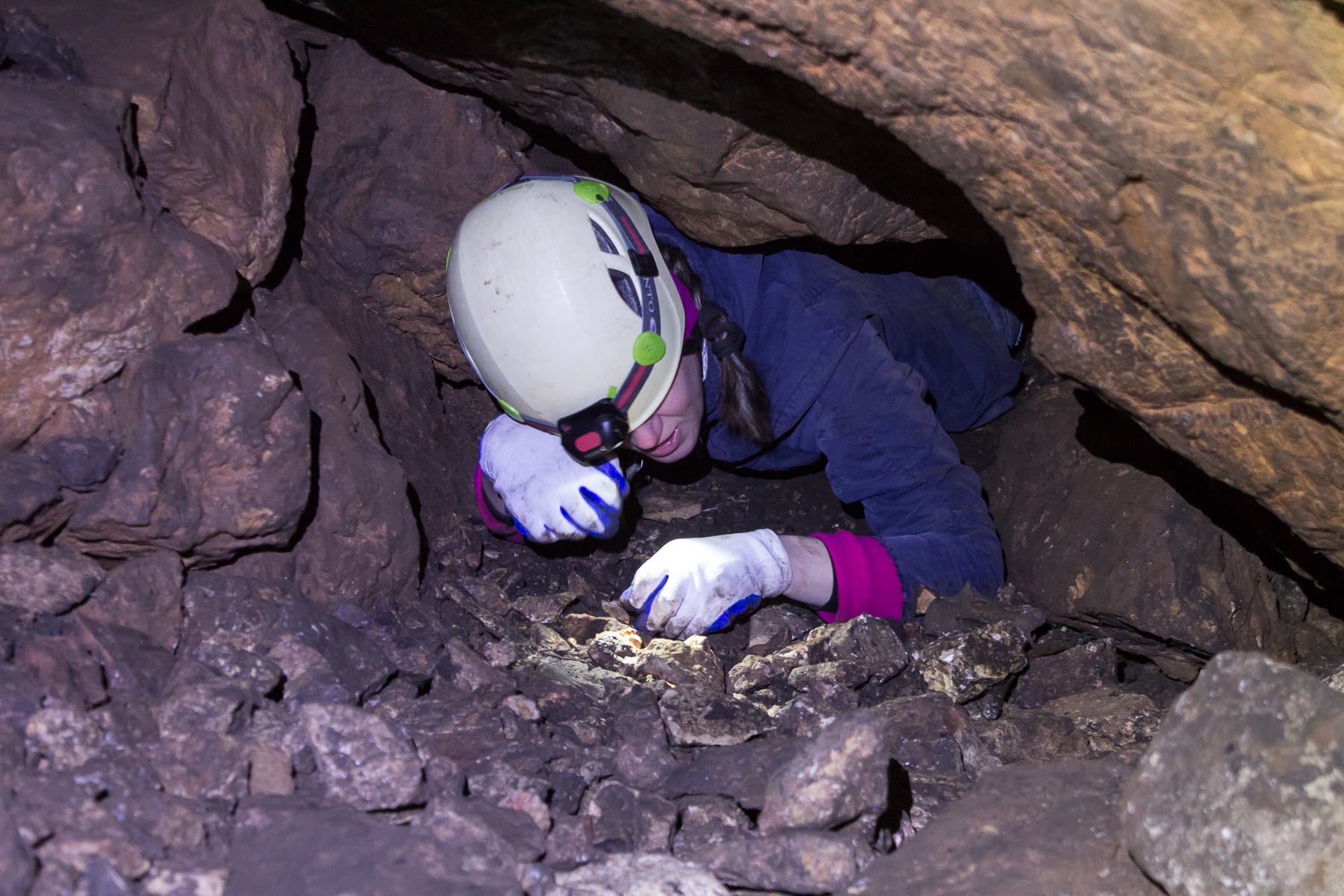 Сначала мы увидели много всяческих костей. Чем продолжили шокировать Лену, еще не привычную к спелеожизни. Более того, поскольку почти везде в Лисьей пещере из одного грота в другой нужно именно ползти на пузе, пришлось даже немного поползать по этим костям. Ну хотя бы не как рассказывал Олег: «ползешь носом в землю, а там мышь дохлая заплесневелая…».