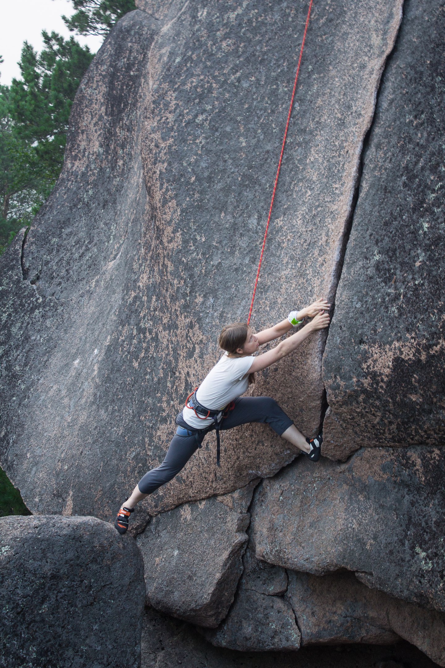 А вот лазание в этот день не задалось. Скальники, которые буквально вчера отлично сидели по ноге, вдруг стали вызывать слезы, мучения и боль. Невозможно было даже шагу сделать. Видимо, после вчерашнего дня у меня отекли ноги и увеличились в размере.
