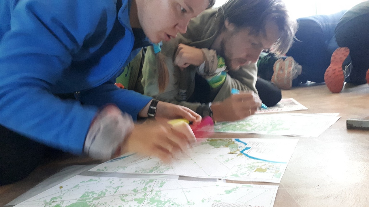 Несмотря на уличную жару, в помещении школы, где был старт, было холодно. Стульев на этот раз нам не досталось и пришлось планировать сидя на полу. Карты выдали две формата А3 и они нас удивили.