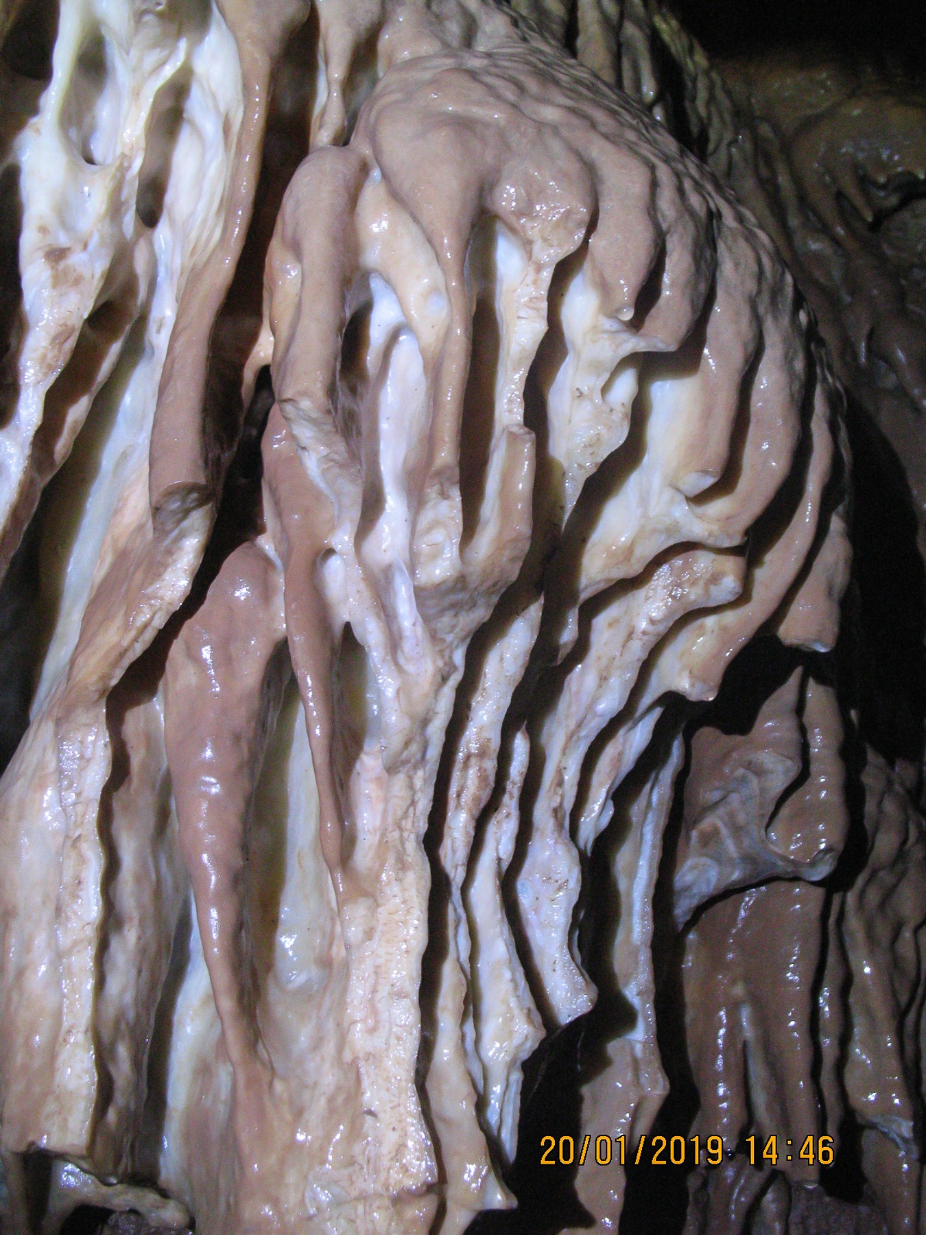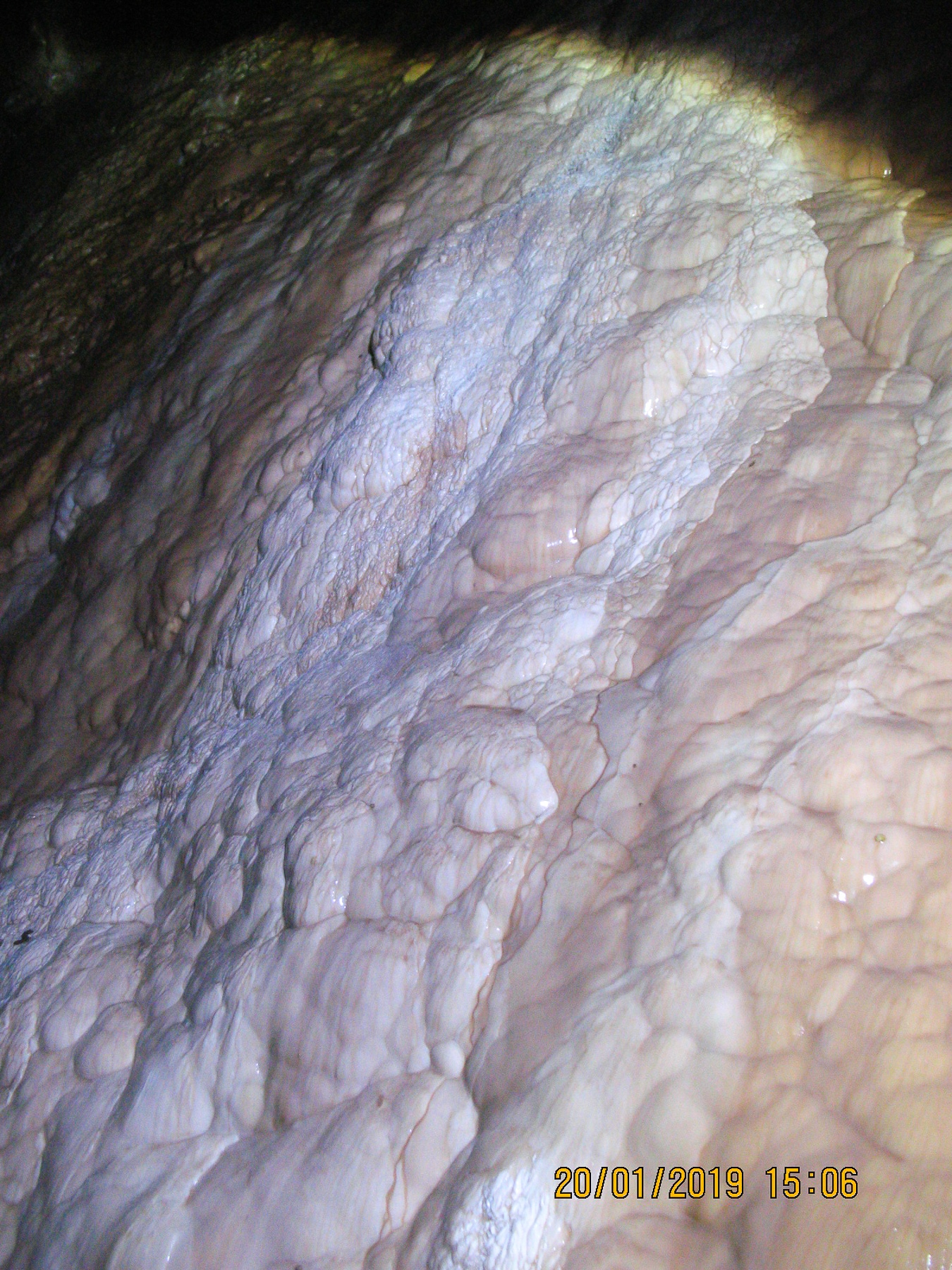 Здесь стало довольно влажно. Кринницы — это такие лужицы, обрамленные всякими натеками. Правда, они полностью залапаны глиной, а ведь могли бы быть белыми и красивыми.